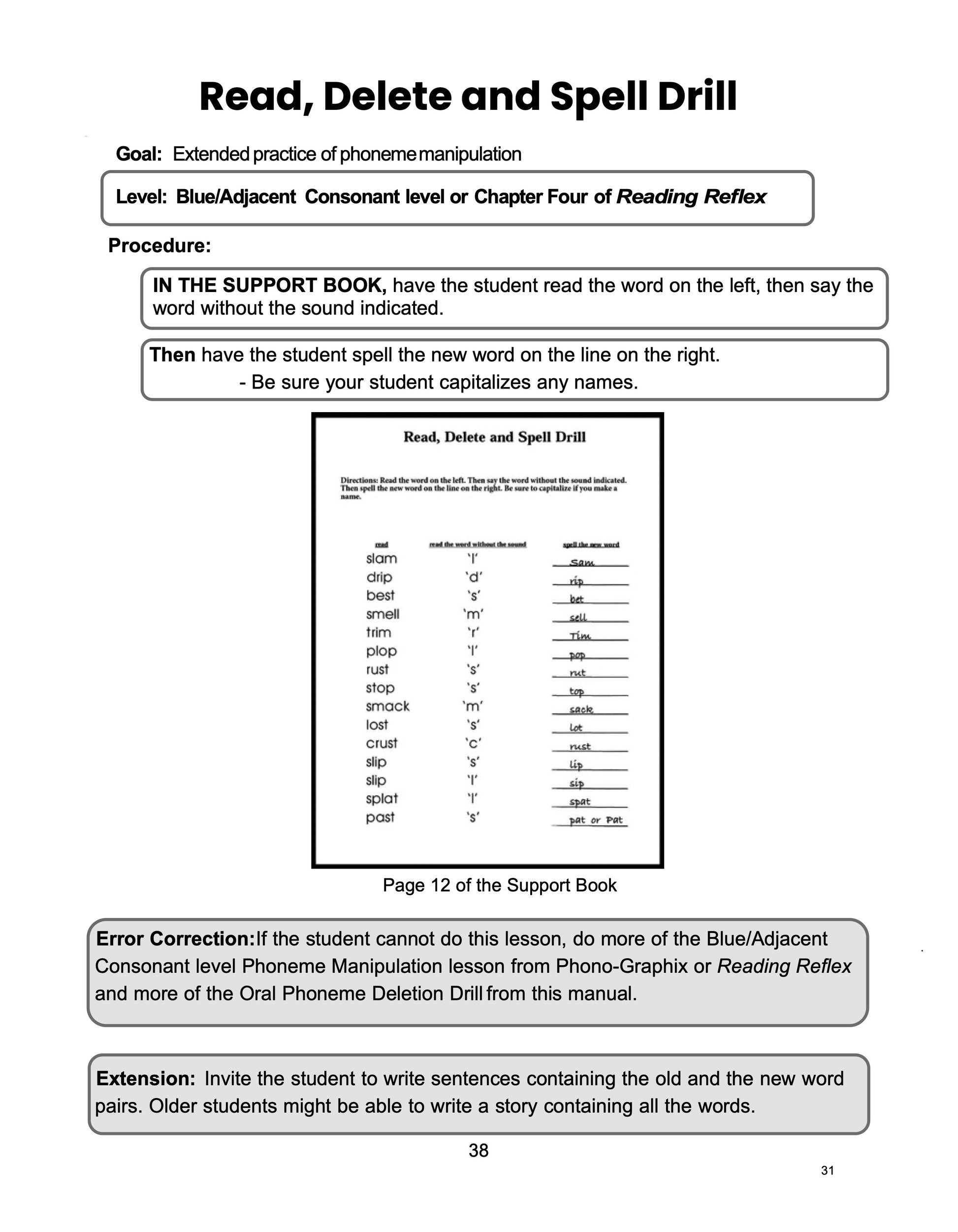 This manual presents and explains activities for students who have completed a course of Phono-Graphix reading therapy but are not yet fluent readers or spellers. It shows you how to structure extended therapy lessons, how to set goals with your students, how to help motivate them and how to center your skill and concept practice around books of the students' choosing, for the motivation that results from keeping your practice in the proper context.